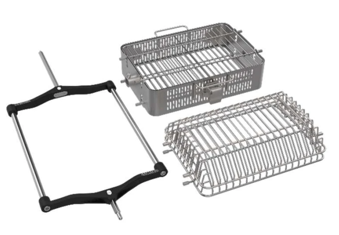 Expand your culinary expertise with the Kamado Joe JoeTisserie Basket Set! This kit includes a flat basket, tumbler basket, and quick connect rod for easy installation. Add versatility and convenience to your JoeTisserie and start tackling new and unique dishes!