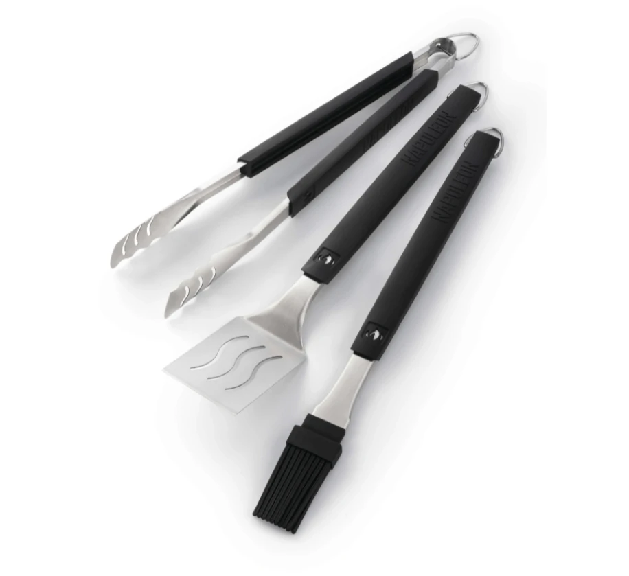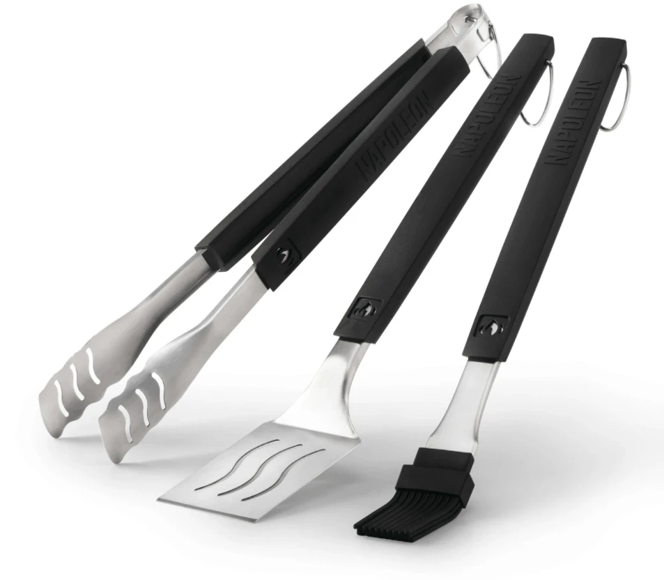 Elegant and easy to use Napoleon’s stainless steel 3-piece tool set has everything you need to master your next barbecue. Easily hang with the oversized loops for storage on your grill’s tool hooks. The silicone basting brush lets you safely slather on the sauce, and cleanup is a breeze because it’s dishwasher safe.