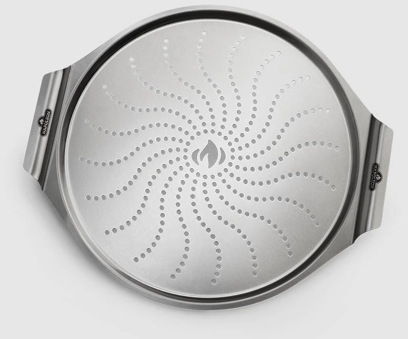 Easily bake perfect pizzas using the Napoleon 14-inch (35.5 cm) Stainless Steel Pizza Pan. The iconic WAVE perforation pattern provides optimal airflow resulting in evenly crisped pizza. This dishwasher safe pan heats fast and evenly, acting like a shield to prevent burning, encouraging a thoroughly cooked pizza. The built-in handles allow you to safely move the pizza to and from the grill.