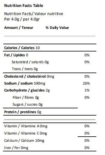 - Ingredients: salt, garlic, spices, canola oil, extractives of dill seed