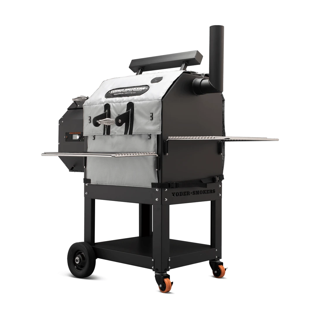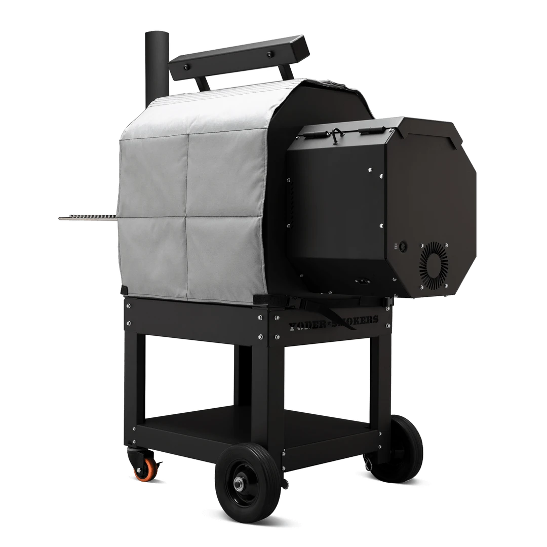 This thermal jacket for the Yoder Smoker YS480 pellet grill helps maintain temperatures during cold winter months. Use less pellets and cook more efficiently. Three pieces fit around cooker body.