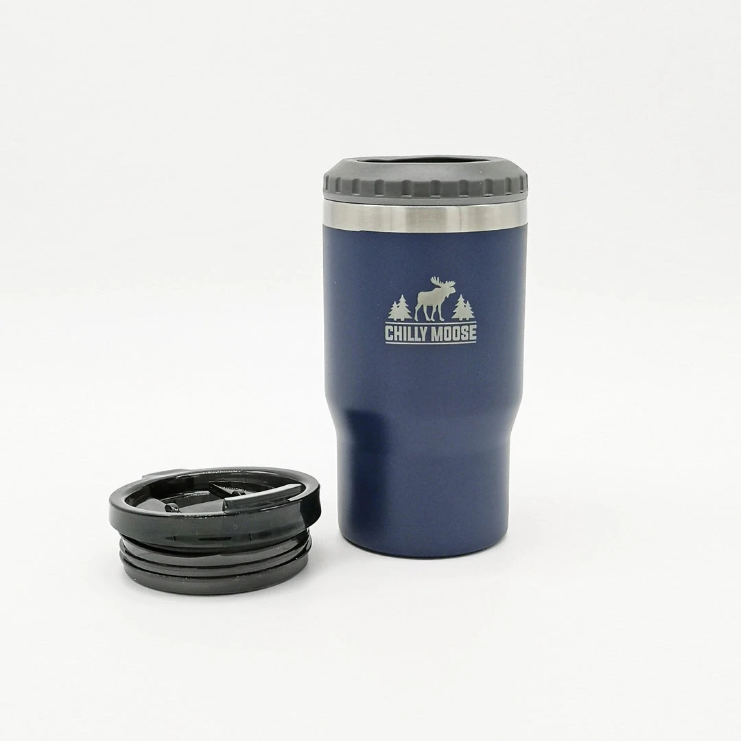 Meet the Brent Quad: Chilly Moose’s 4-in-1 Insulator and Tumbler. Versatility and added value were the inspiration behind this brilliant product. Engineered to insulate a standard can, bottle, or slim can. Feel like a stiffer drink instead? No problem, simply switch the lid and now you can keep your drink inside the 14oz tumbler!