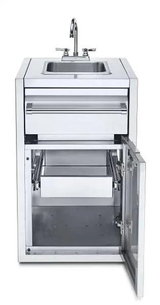 Crown Verity Infinite Series Small Built-In Cabinet with Sink & Single Drawer. The Infinite Series built-in cabinet with sink is perfect for hand, produce and/or cutlery washing. It also has a paper towel holder and a storage cabinet with one single drawer below to fully compliment this sink and your outdoor kitchen.