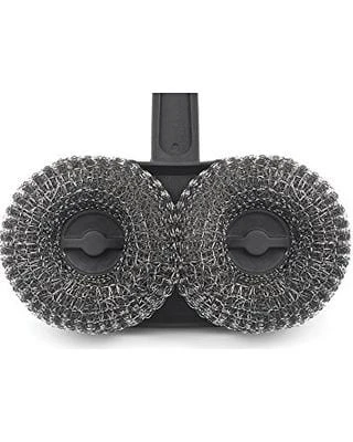 Bristle free and ready to steam. This dual padded scrubber is non-clogging, non-abrasive and safe with all grill types, including porcelain. The woven mesh heads are replaceable and can be used to steam clean your grill surface when dipped in water.