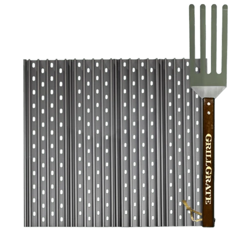 We call them “sear stations” for a reason. GrillGrates turn pellet smokers into pellet grills. They trap and concentrate heat and conduct it up the rails for great searing while the valleys sizzle juices for added flavor. On the YS1500, GrillGrates can be used as replacements of the existing grates. Every set comes with a GrateTool which is part fork, part spatula that fits between the rails to get under your food and lift it without scraping.