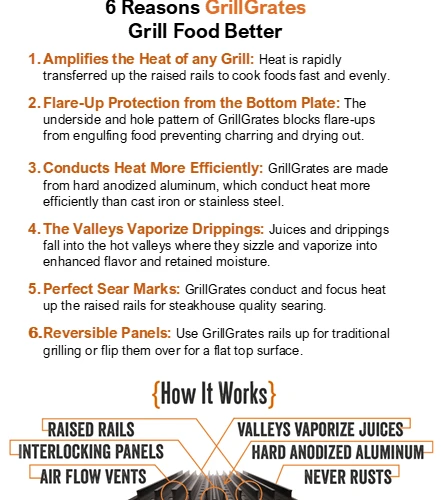 - GrillGrates are reversible interlocking panels, giving you two grilling surfaces; rails up or on the flat side