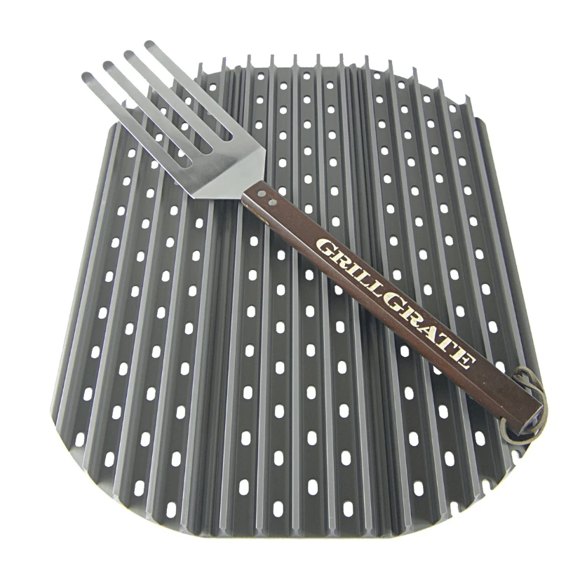 GrillGrates provide protected, high-heat grilling on most types of grills! The bottom plate prevent hot rushing air and flames from charring and drying out food, while keeping the juices sizzling instead of feeding the flames. GrillGrates are simple to use – just place them on top of your existing grate surface! Every set comes with a GrateTool which is part fork, part spatula that fits between the rails to get under your food and lift it without scraping.