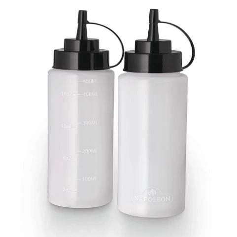 Napoleon 70058 2 Piece 16oz Squeeze Bottles provides a premium addition to your outdoor kitchen setup. These squeeze bottles offer an easy way to hold water, oil, or your favorite condiments and sauces to use while grilling. This set contains two 16-ounce bottles