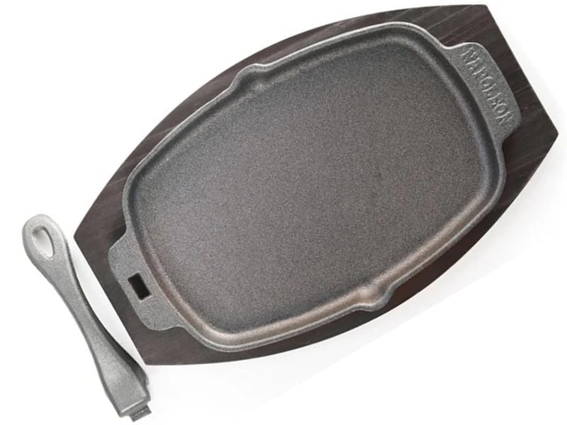 Each Sizzle Platter set comes with its own custom fit wooden server for the deep cast iron platter, and an interlocking handle that is removable to stay cool while youre cooking on the grill or in the oven.
