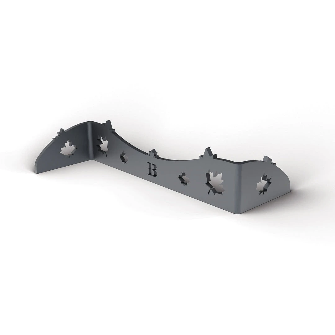 The trendy Oven Brothers Log Holder! Made of sturdy laser-cut carbon steel, this holder will hold your wood in place with its maple leaf spikes and shape. Behold the Holder!