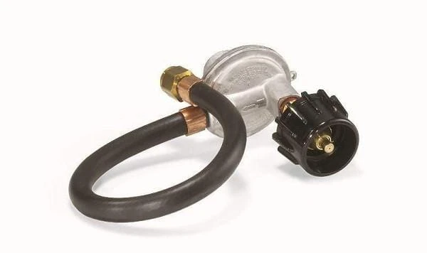 For an airtight, secure connection between a liquid propane grill and its tank, barbecue giant Weber offers this QCC1 adaptable hose and regulator kit from their wide variety of genuine replacement parts. The regulator ensures that fuel safely travels from the tank through the grill, preventing any leaks or mishaps. The kit contains a 42-inch, rubber hose. The regulator features a large, plastic knob that users manually screw counterclockwise onto QCC1 connection style tanks for a factory seal. Affixing the regulator to the tank requires absolutely no tools, while use of articles such as a screwdriver may cause damage. Grill owners in rural environments or with pets may opt to purchase a wire hose guard to prevent animals from chewing through the hose. A detailed manual assists users with kit assembly and safety tips.