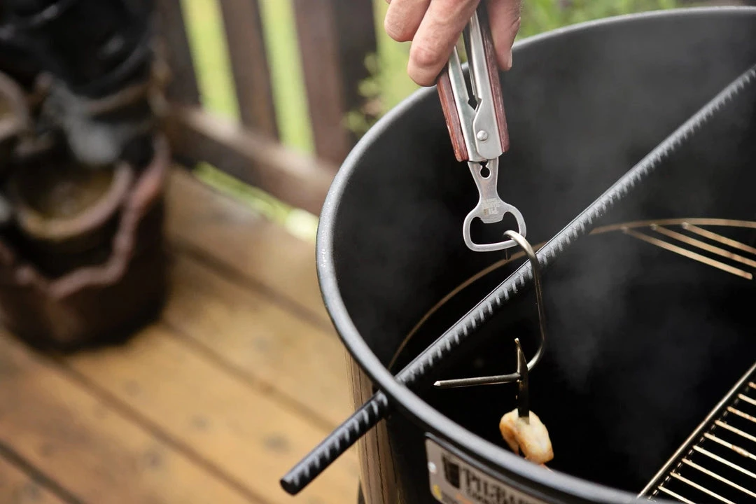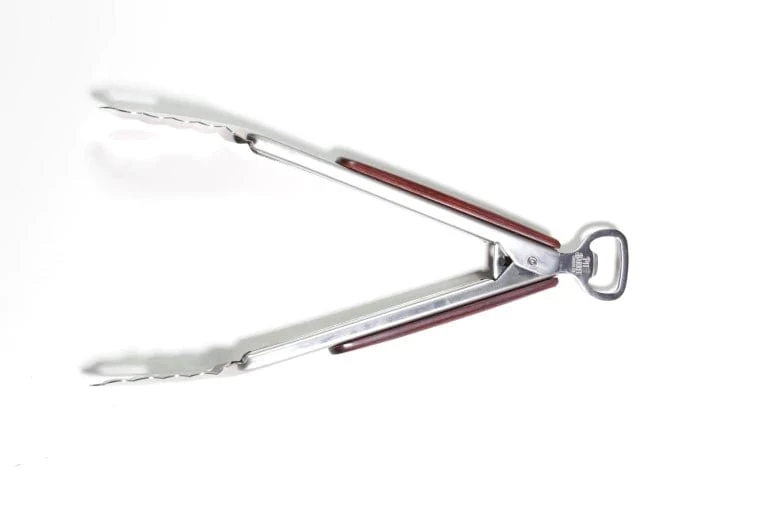 Slotted ends elevate the look of these high-quality ultimate tongs wihch is especially convenient when grilling and hanging in your Pit Barrel. The heavy-duty stainless steel arms feature the Pit Barrel signature wood handle, which is finished off with a bottle opener at the top.